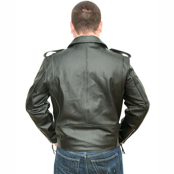 Men's Basic Biker Jacket Basic Motorcycle Jacket - thick, heavy and durable cowhide leather with fixed quilted lining.