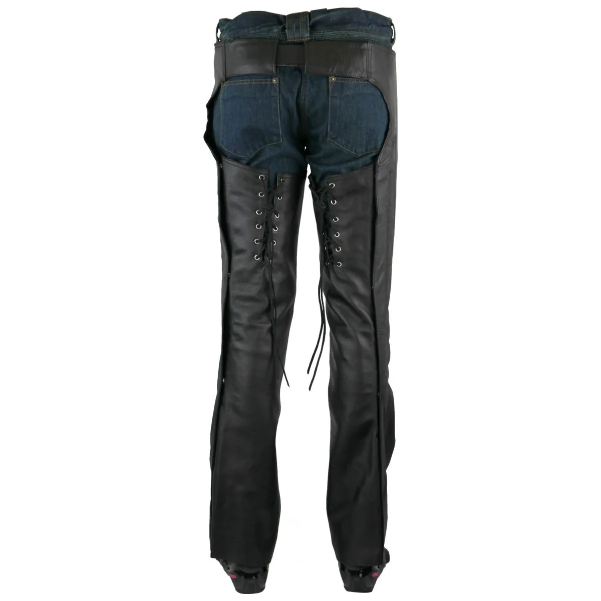 Jafrum LC302 Womens Black Premium Cowhide Low Rise Lady Biker Motorcycle Riding Leather Chaps.