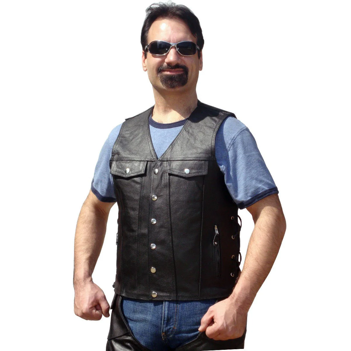 Vance MV109 Mens Black Jean Style Leather Motorcycle Vest.