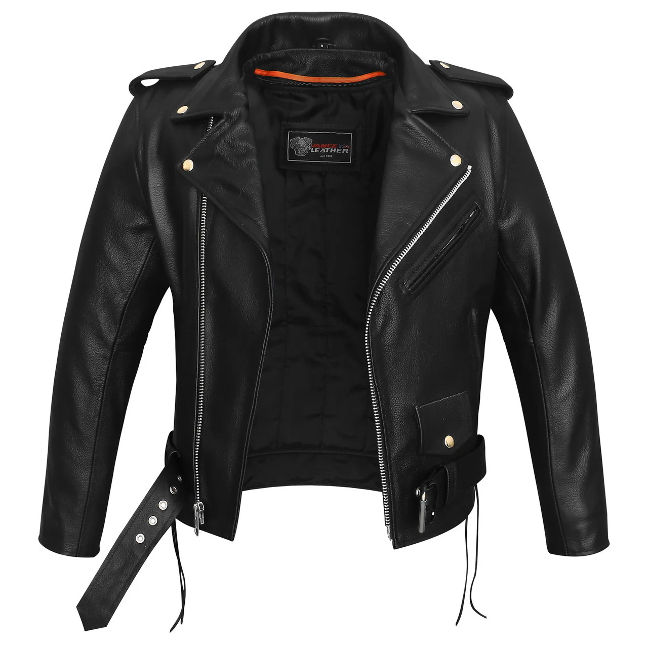Crafted from durable cowhide leather, this jacket blends timeless style with essential features for bikers. The concealed carry pocket prioritizes personal security and is discreetly designed for concealed firearms with the necessary permits. Adapt to changing weather with the removable insulated liner, offering versatility for various riding conditions. The incorporation of side laces not only adds traditional biker aesthetics but also allows for a customized fit, ensuring both style and comfort. Navigating urban streets or cruising on open highways, this motorcycle jacket seamlessly combines fashion and function, making it your reliable and stylish companion on every ride. Ride with confidence, flair, and the assurance of top-notch quality.