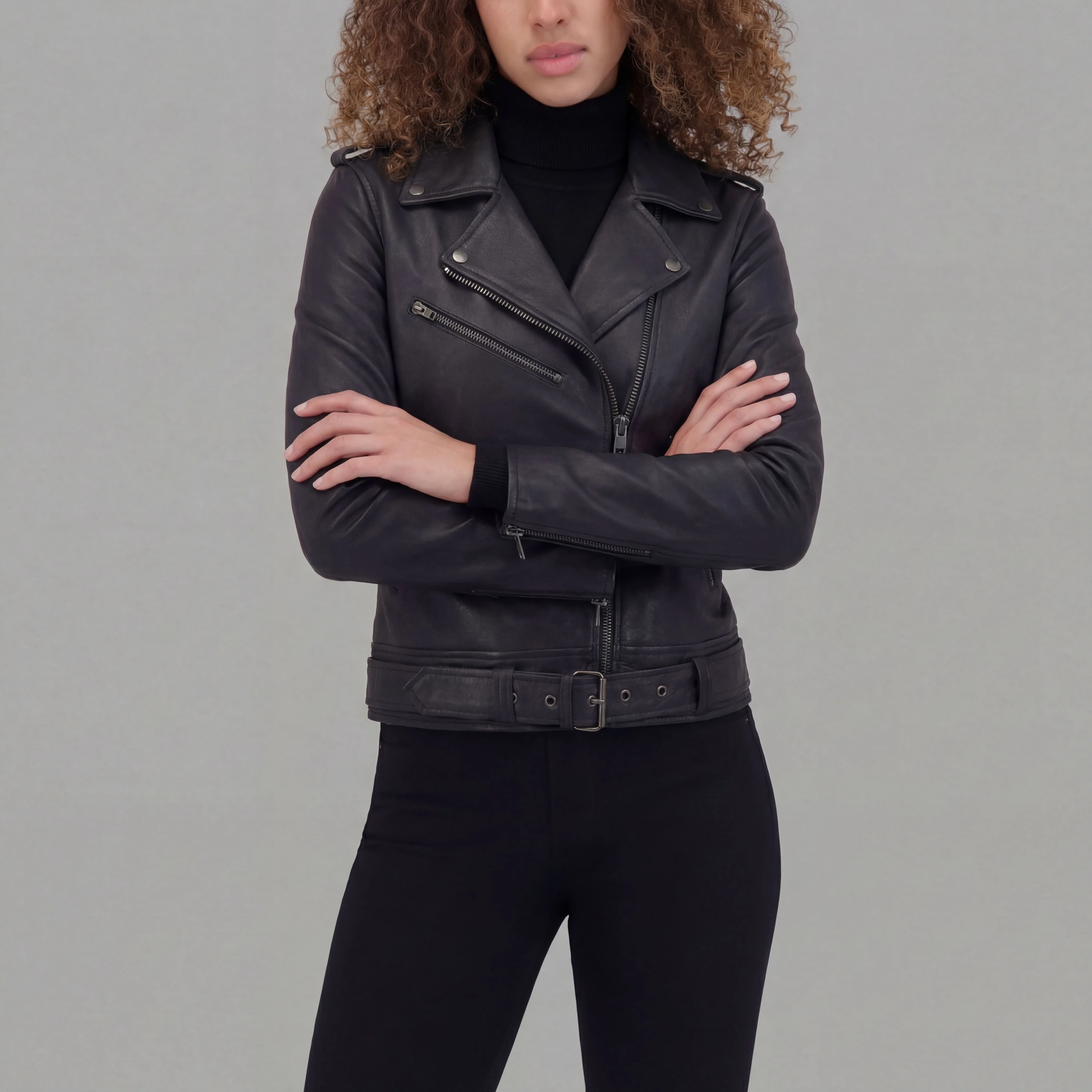 Vance Leather Ladies Premium Lightweight Goatskin Classic Motorcycle Leather Jacket.